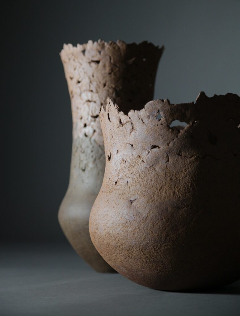 Mon travail sculptural autour du contenant évoque des formes de pots anciens. J’aime travailler